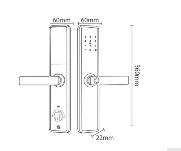 + Kích thước thân khóa ngoài: R66 x C360 x D22mm